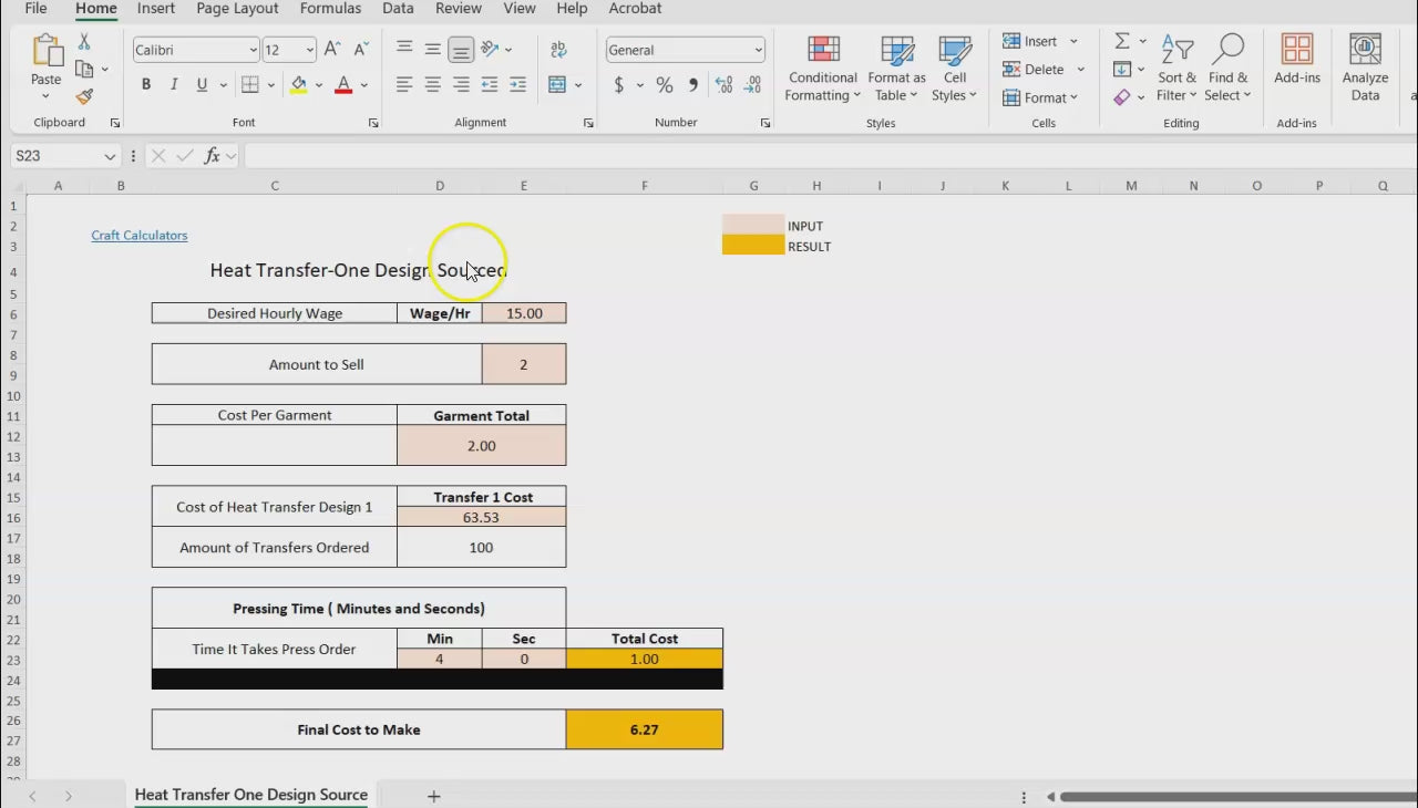 Single Heat Transfer Design on Product Cost Calculator: Calculate the Cost for a Single Outsourced Heat Transfer Design on Your Product