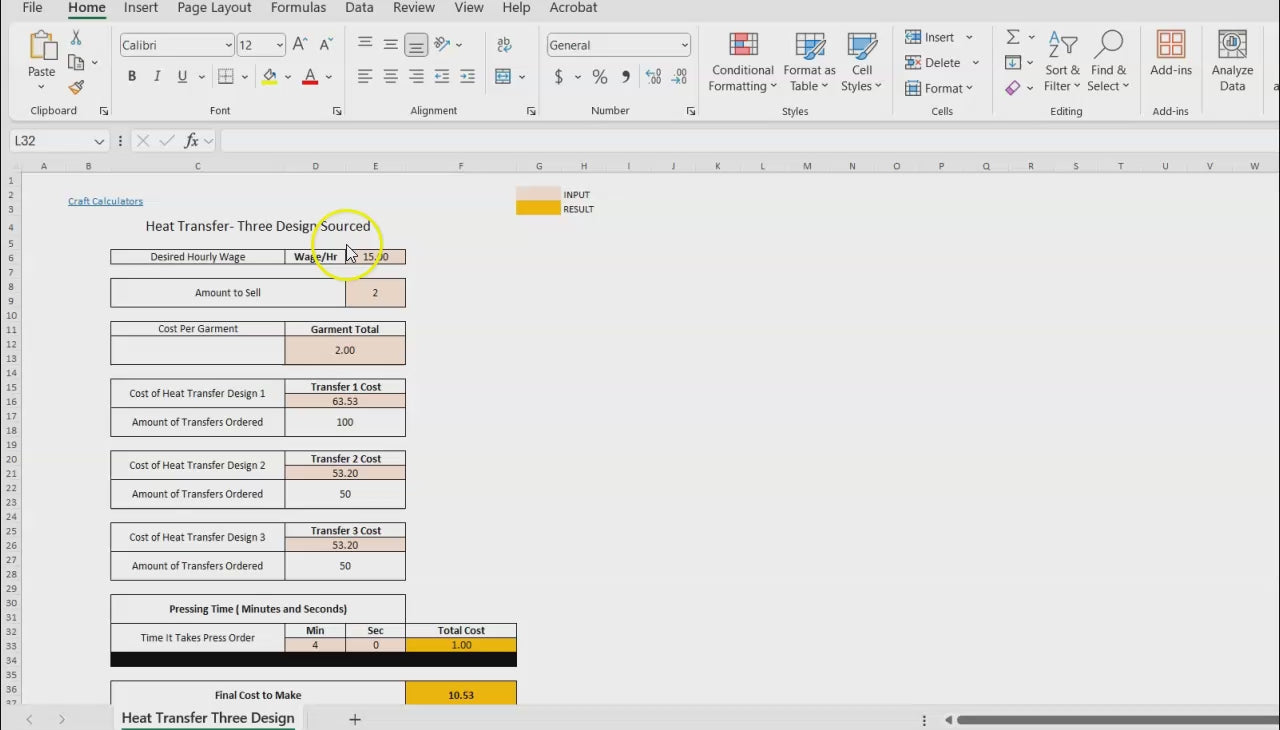 Two Heat Transfer Design on Product Cost Calculator: Calculate the Cost for Two Outsourced Heat Transfer Designs on Your Product