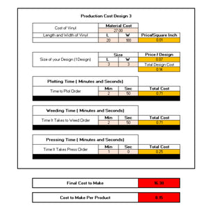 HTV 3 Color Design Product Cost Calculator (Universal Products)