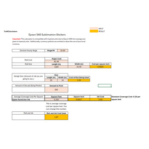 Ensure you are calculating your Epson 540 sticker and decal production costs effectively with this simple and powerful tool, designed to help you understand both your total project expenses and individual unit costs.