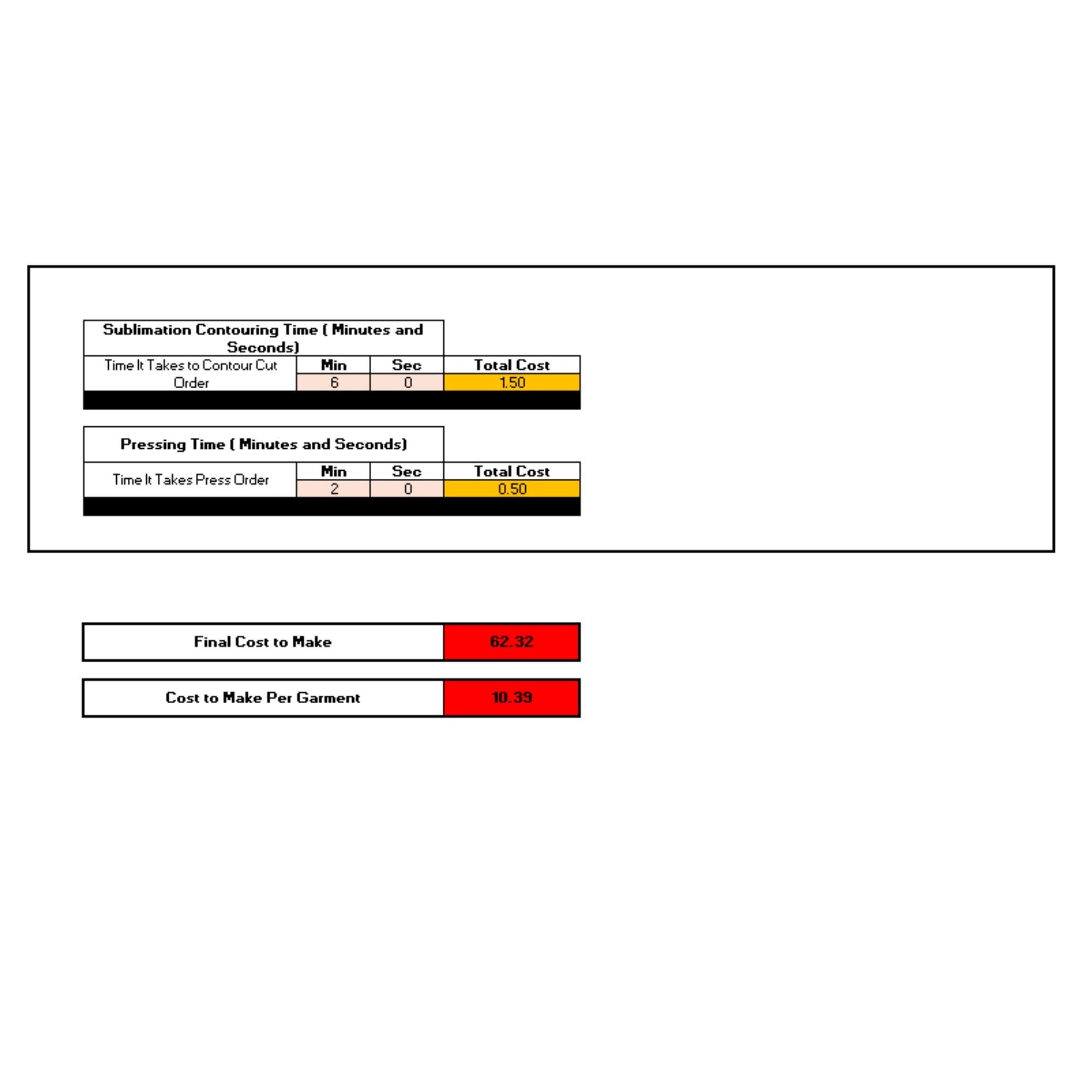 Complete Product Cost Analysis: Calculate product costs including ink and paper roll usage along with contouring time and pressing on garment costs, giving you a complete picture of your project expenses.