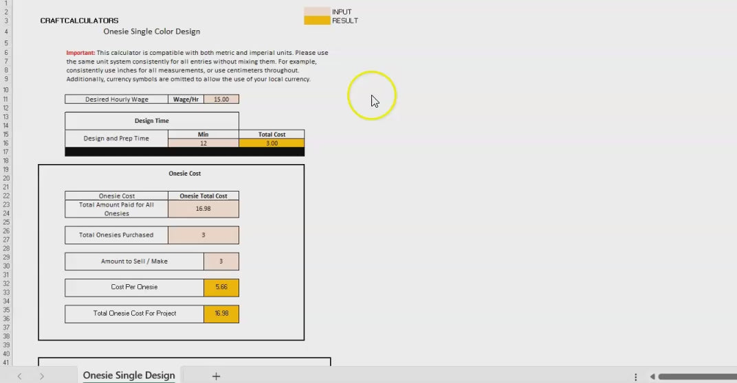Onesie-Specific Pricing: Calculator designed specifically for onesie HTV projects, allowing you to factor in onesie-specific costs, sizing considerations, and delicate fabric handling time.