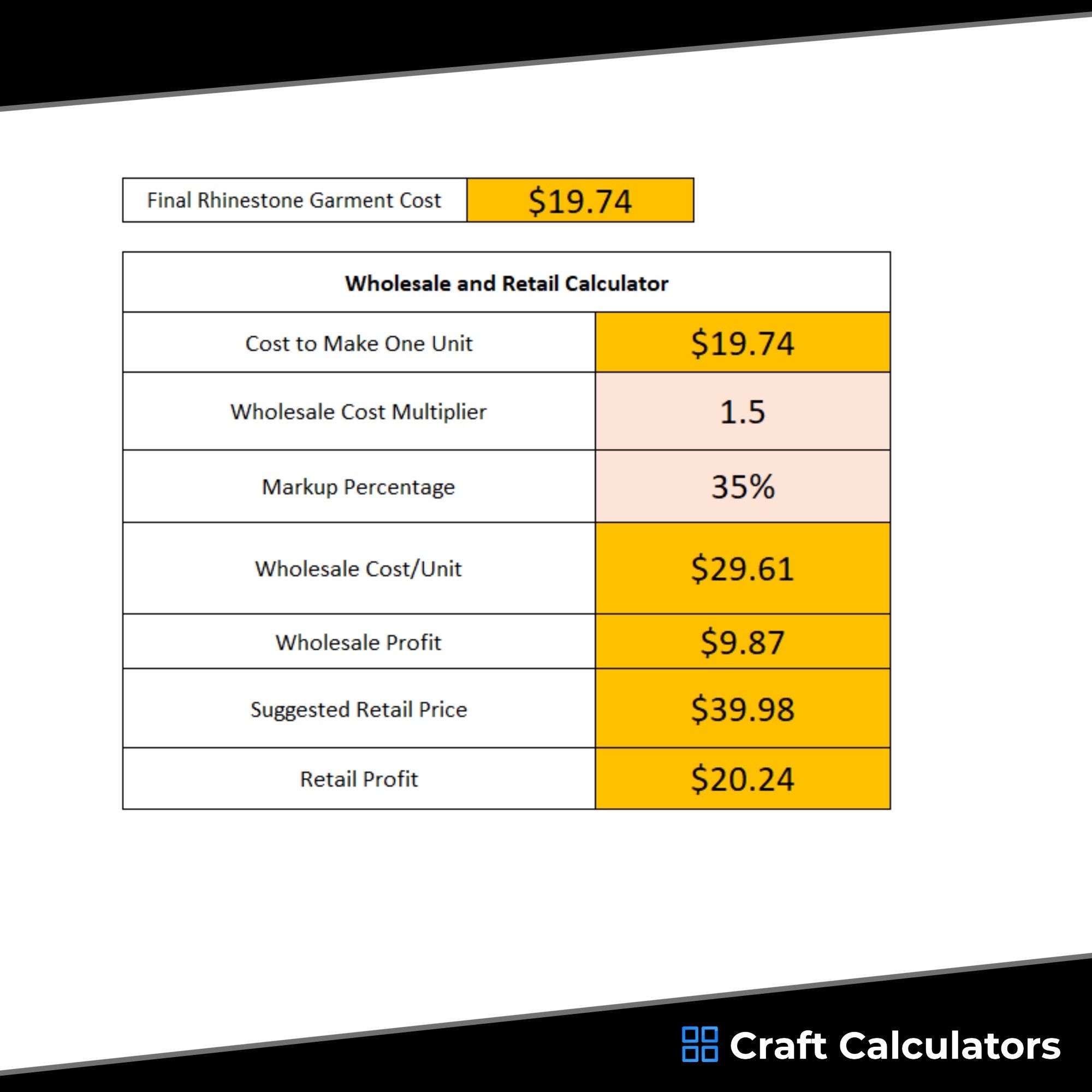 Want to create a rhinestone product but don't know how much it will cost? Our editable cost calculator can help! It uses flock sheets to figure out the cost of making your design. Plus, it suggests prices you can sell it for to make a profit. You'll have an advantage over other sellers in the market and can start making your next winning product today.