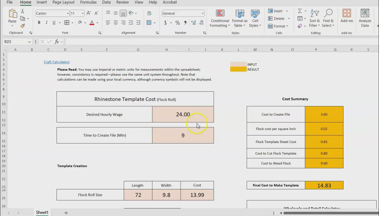 Rhinestone (Flock Rolls) Template Pricing Calculator: Easily Determine Template Costs