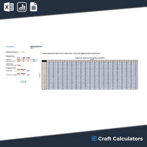 Step 2: After inputting the data, the calculator automatically calculates your cost to make within the matrix. The numbers on the top and sides represent your product dimensions. Easily find the size you need and get your cost-to-make price instantly.