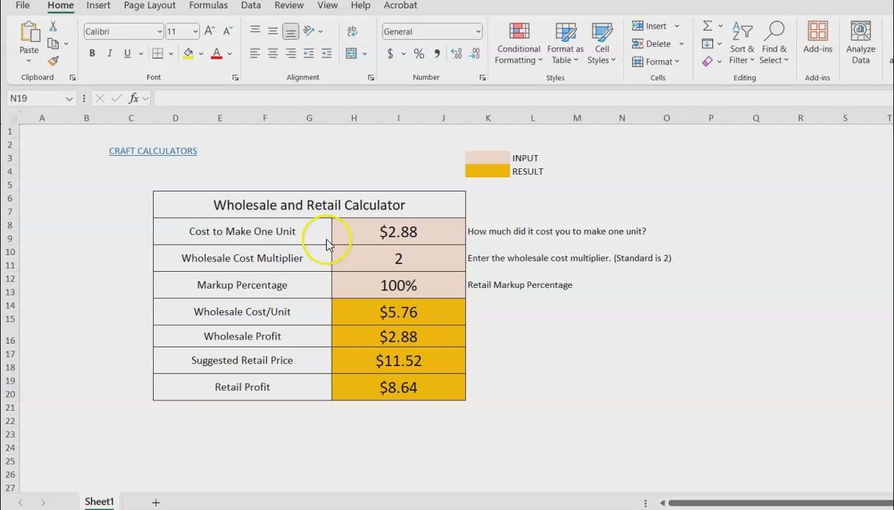 Use This Editable Calculator to Easily Calculate Your Wholesale and Retail Price for Your Products